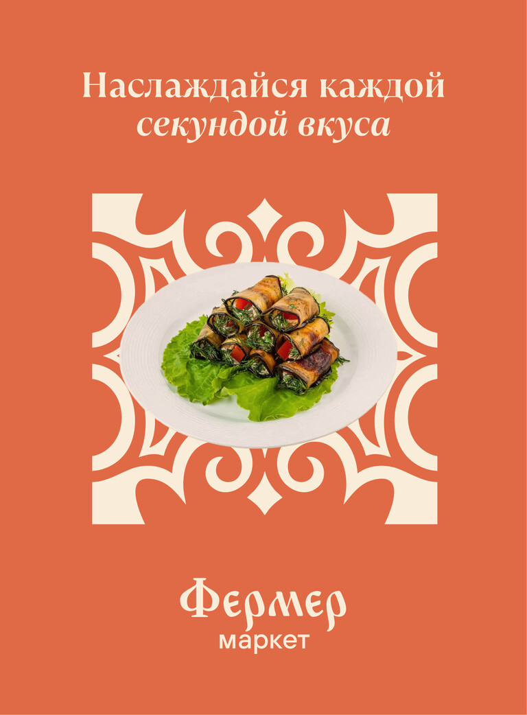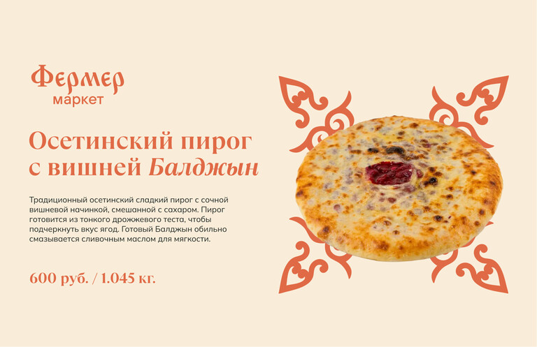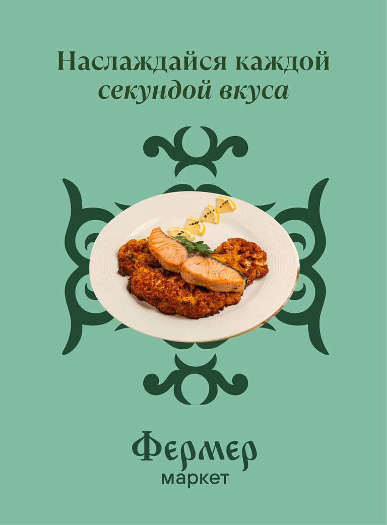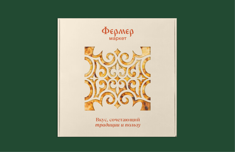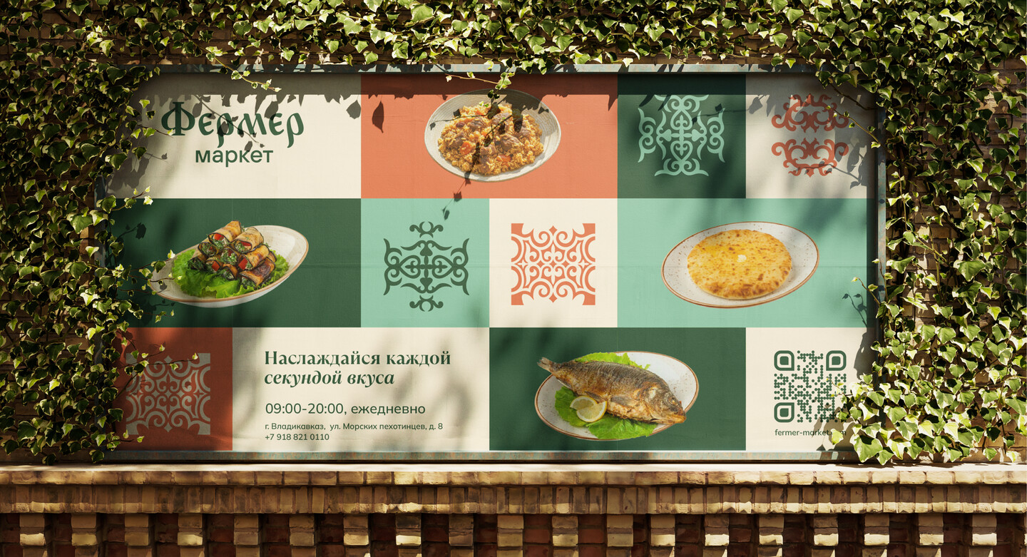 Новая концепция «Фермер Маркет» — современная интерпретация осетинского культурного кода, в котором традиции подаются с премиальной, уверенной сдержанностью. Это чистая графика, аккуратно осмысленные узоры, благородная палитра и визуальная дисциплина, которые создают ощущение качества и профессиональности.
